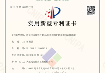 • 防止應(yīng)力腐蝕開(kāi)裂ZARE陰極保護(hù)防腐的液態(tài)烴球罐實(shí)用新型專利